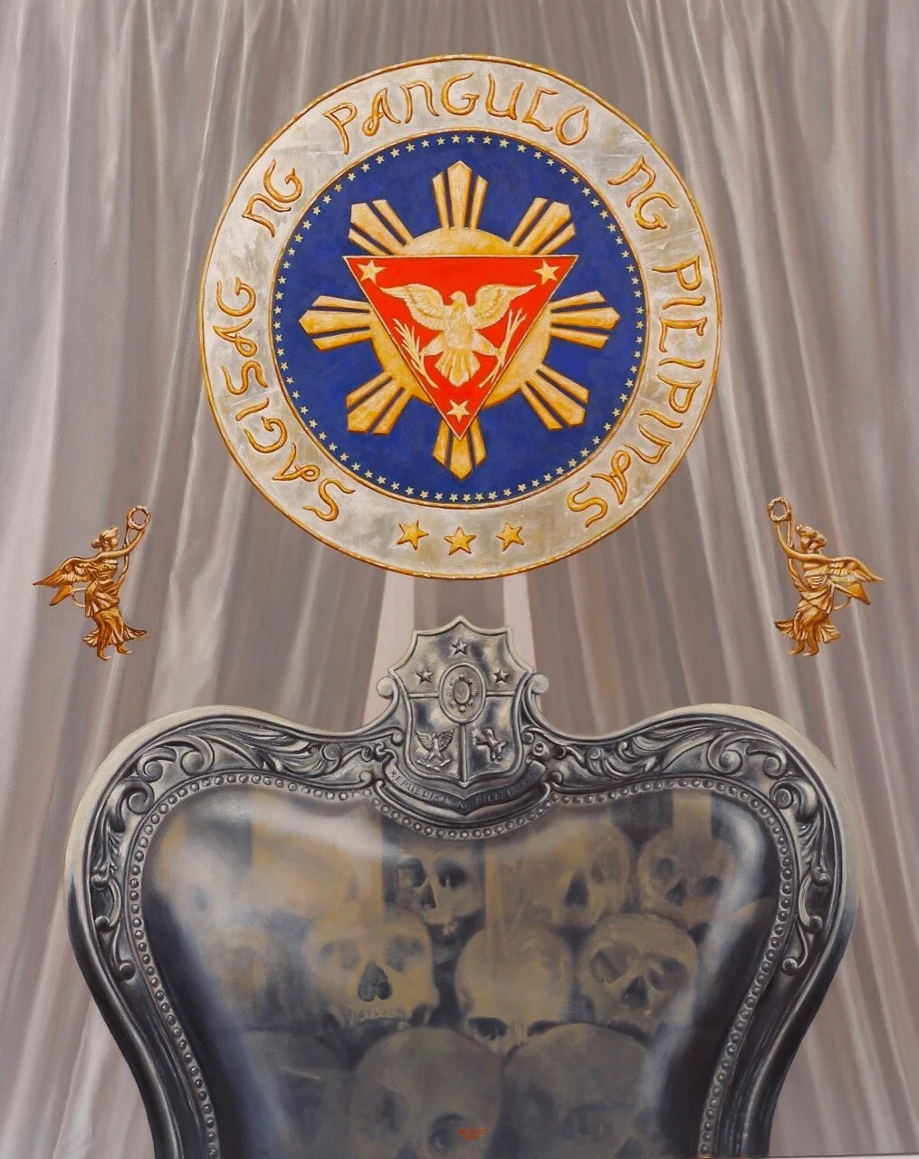 Silent Witnesses is based on affidavits of survivors of Martial Law. I read through dozens of affidavits, and selected ten, which I then distilled into 3-sentence stories. These stories were then individually interpreted by Renz Baluyot into haunting still life artworks of furniture, vehicles, chains, ashtrays, clothing and other objects which may have been present at the time of the events. The complete set of these artworks is now a part of CANVAS’ permanent collection.