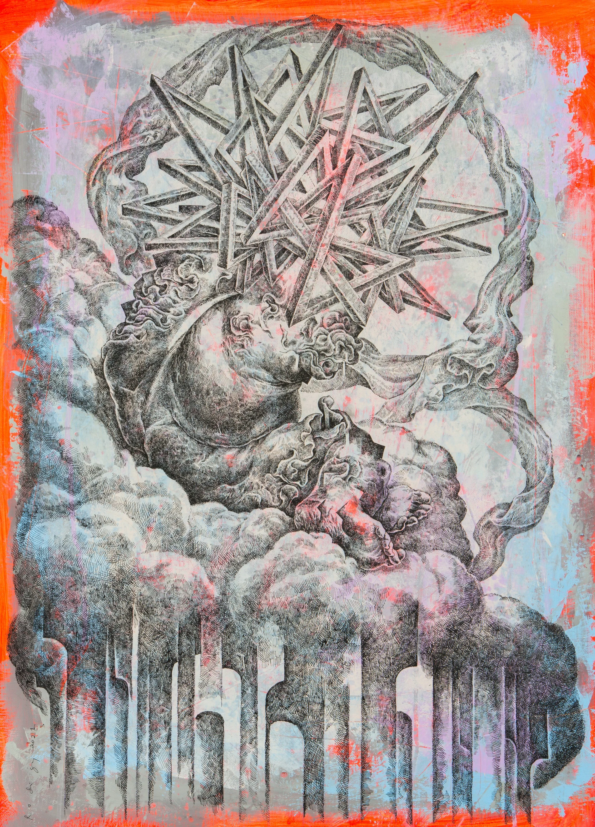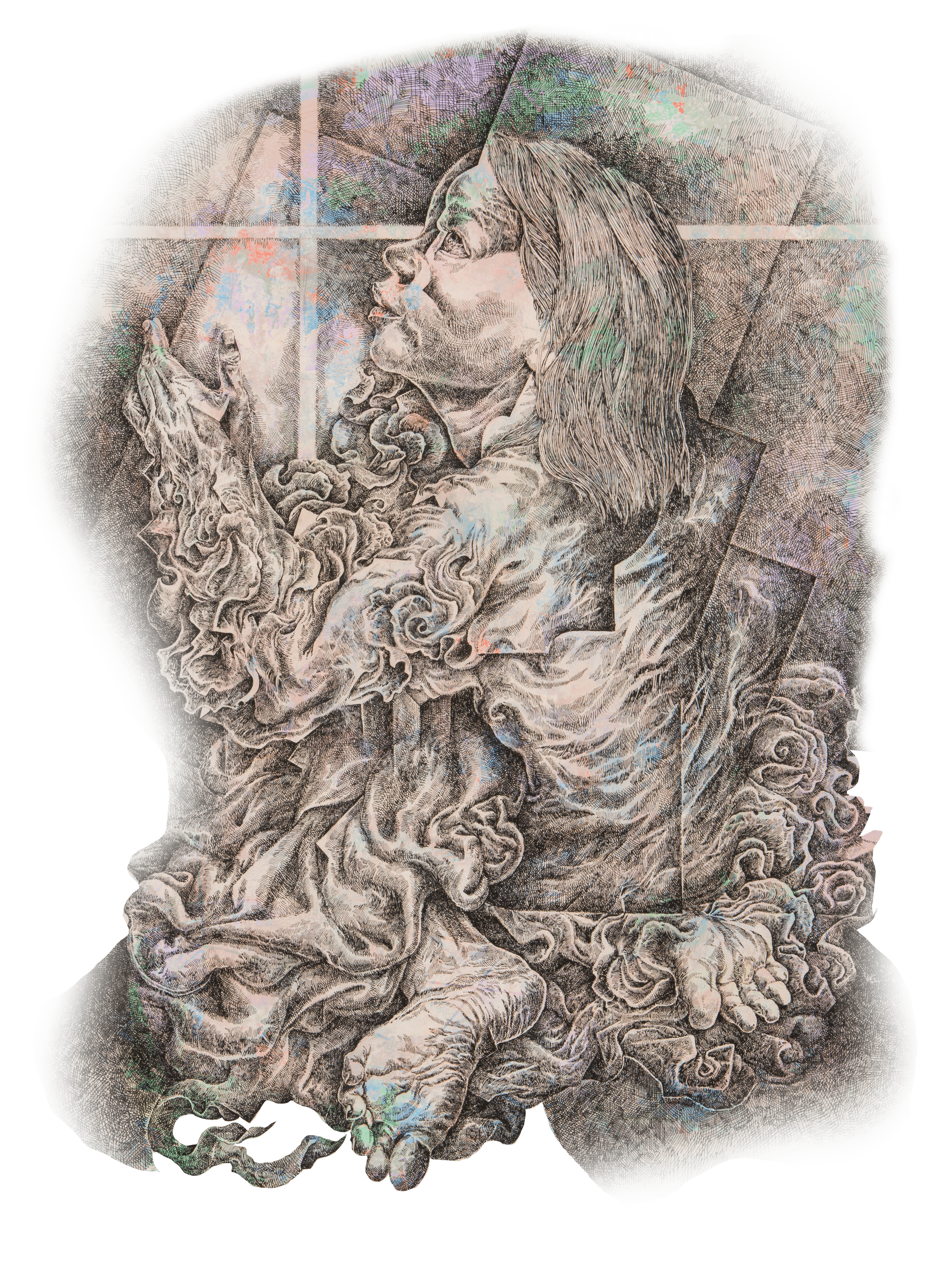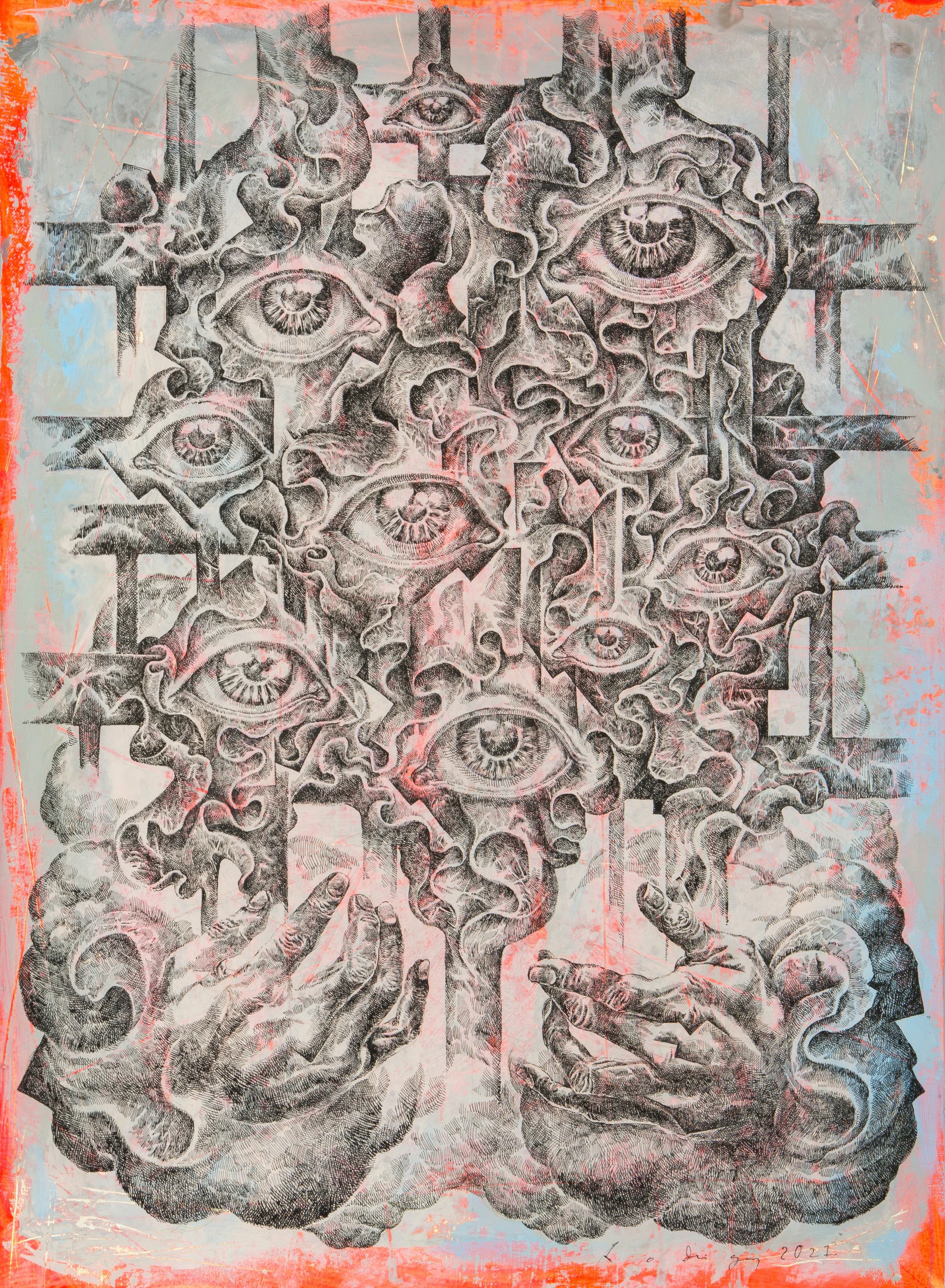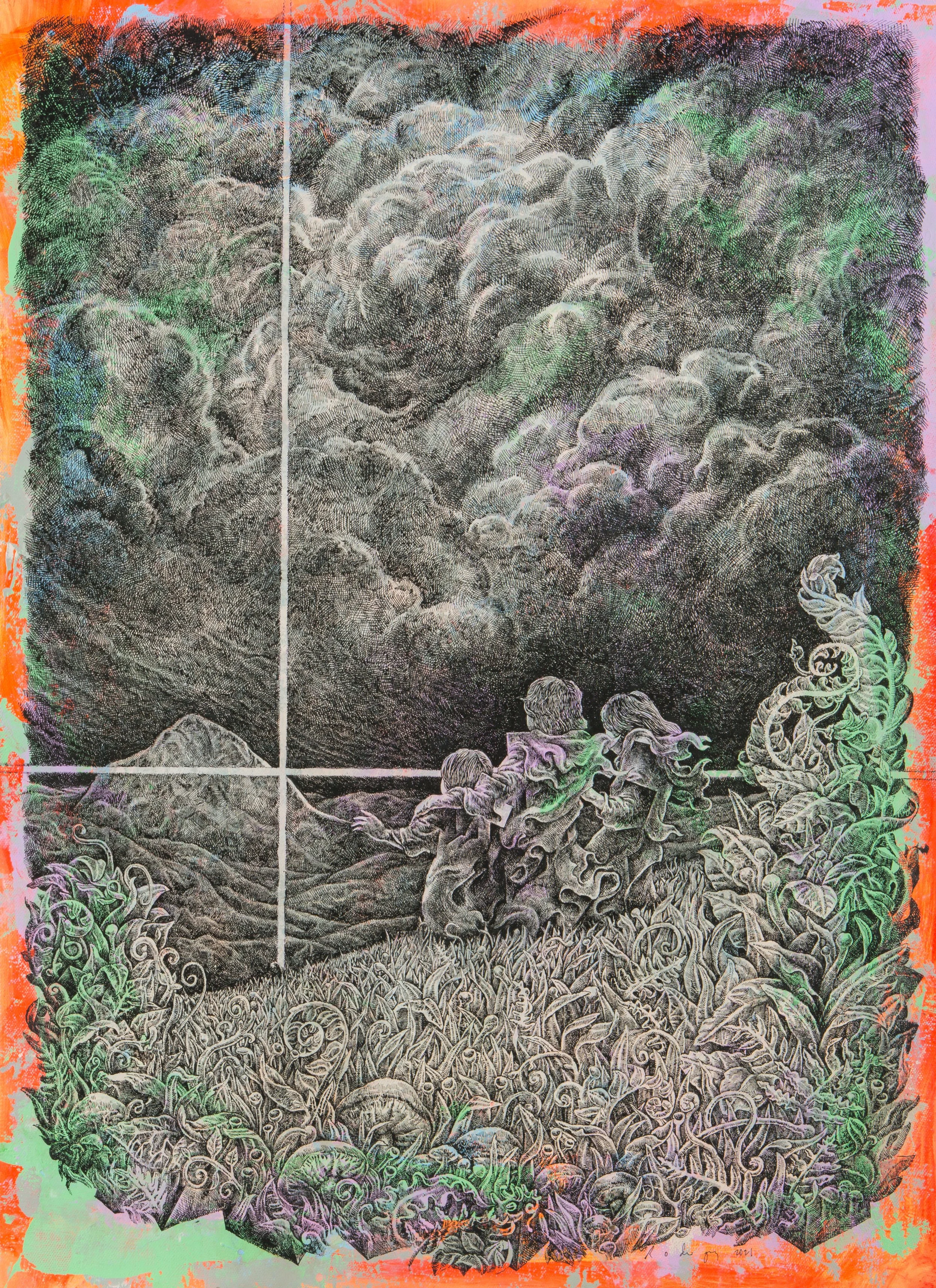Scene 13 / Pen and ink, and acrylic on canvas / 30 x 20 in