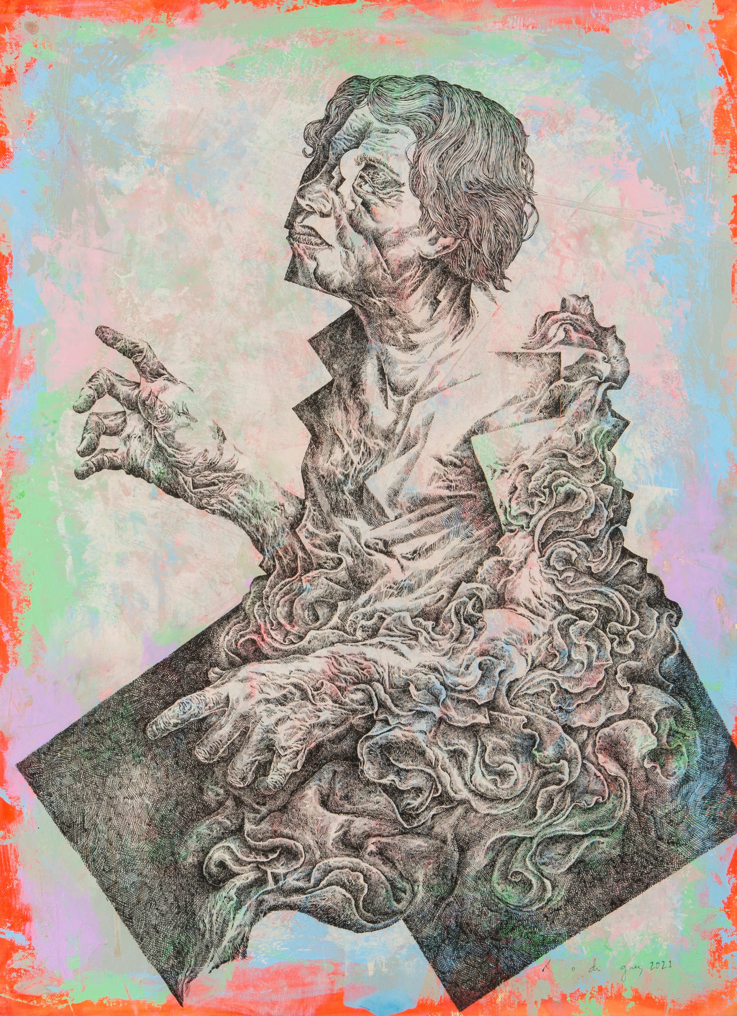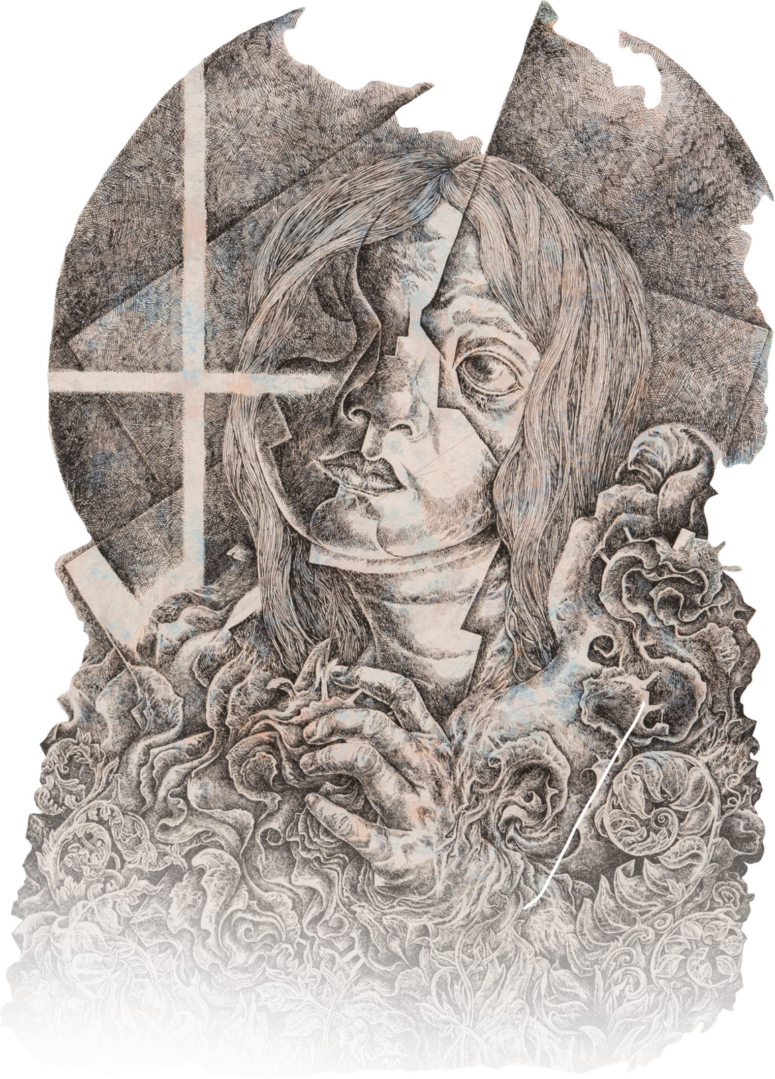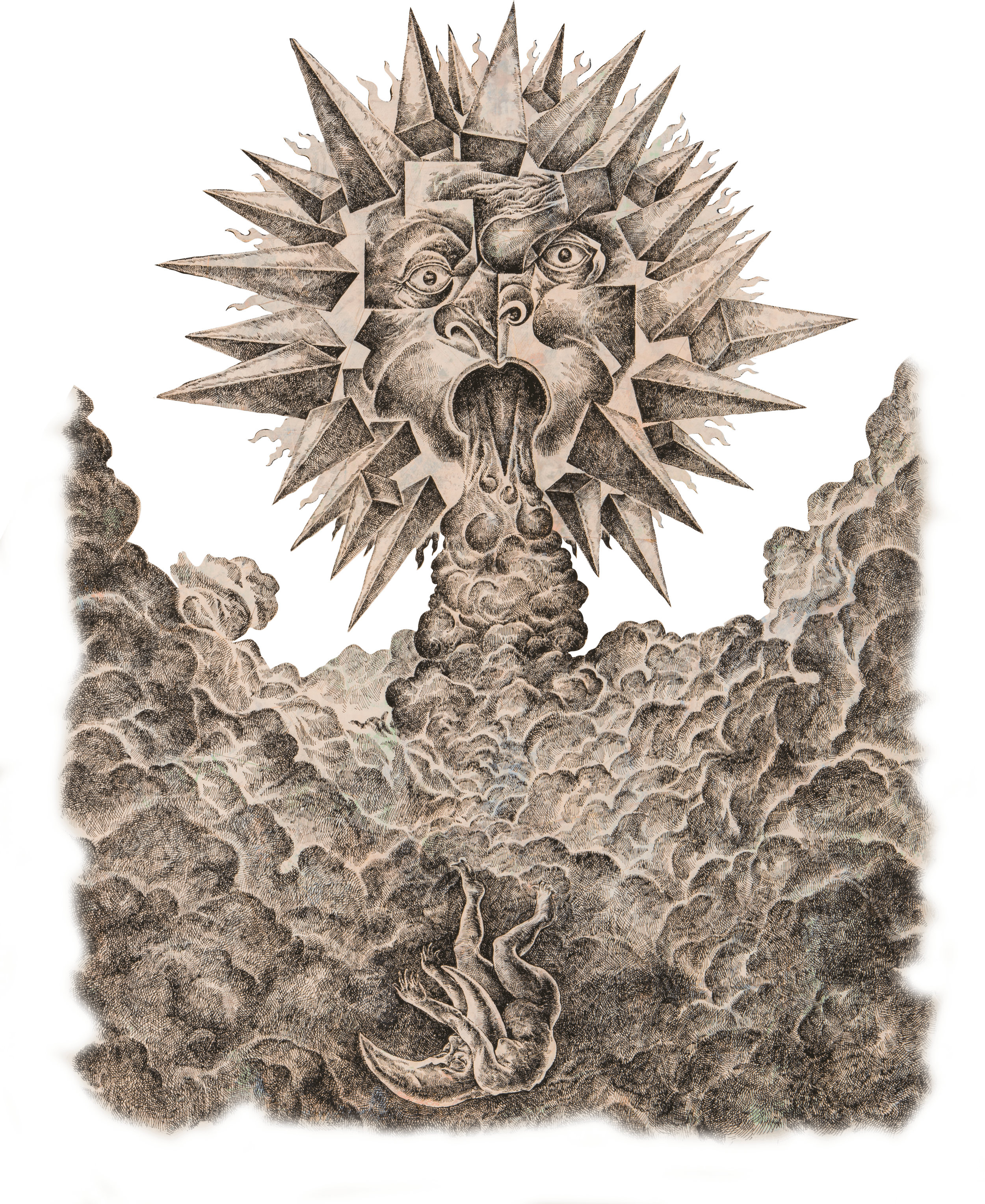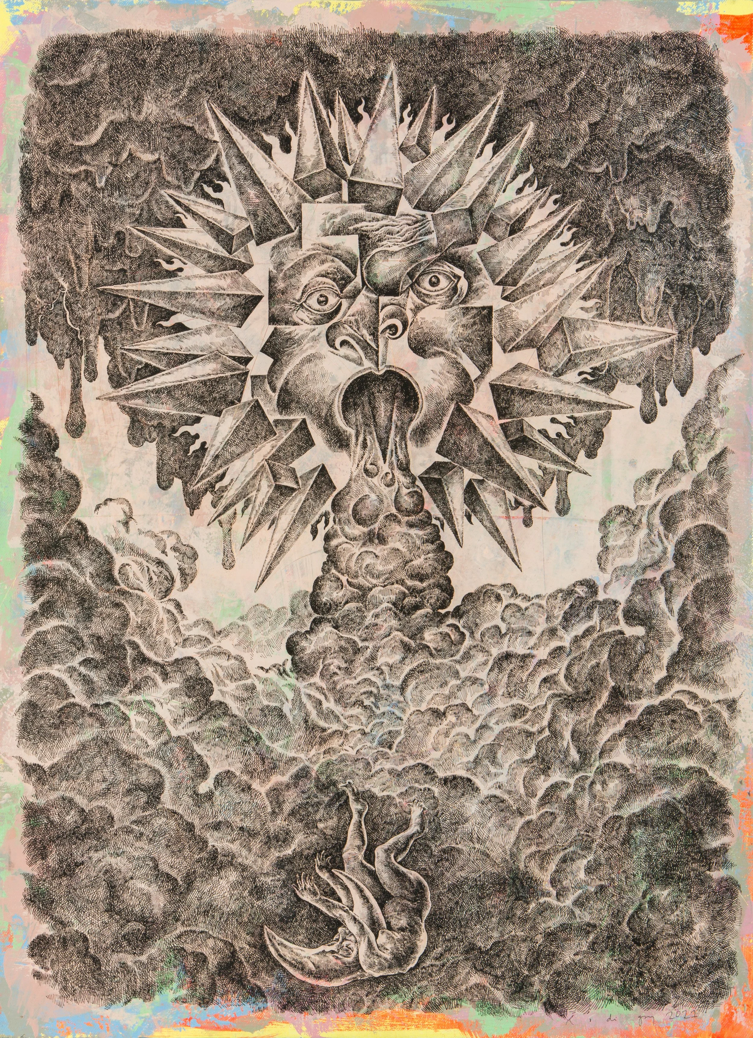 Scene 13 / Pen and ink, and acrylic on canvas / 30 x 20 in