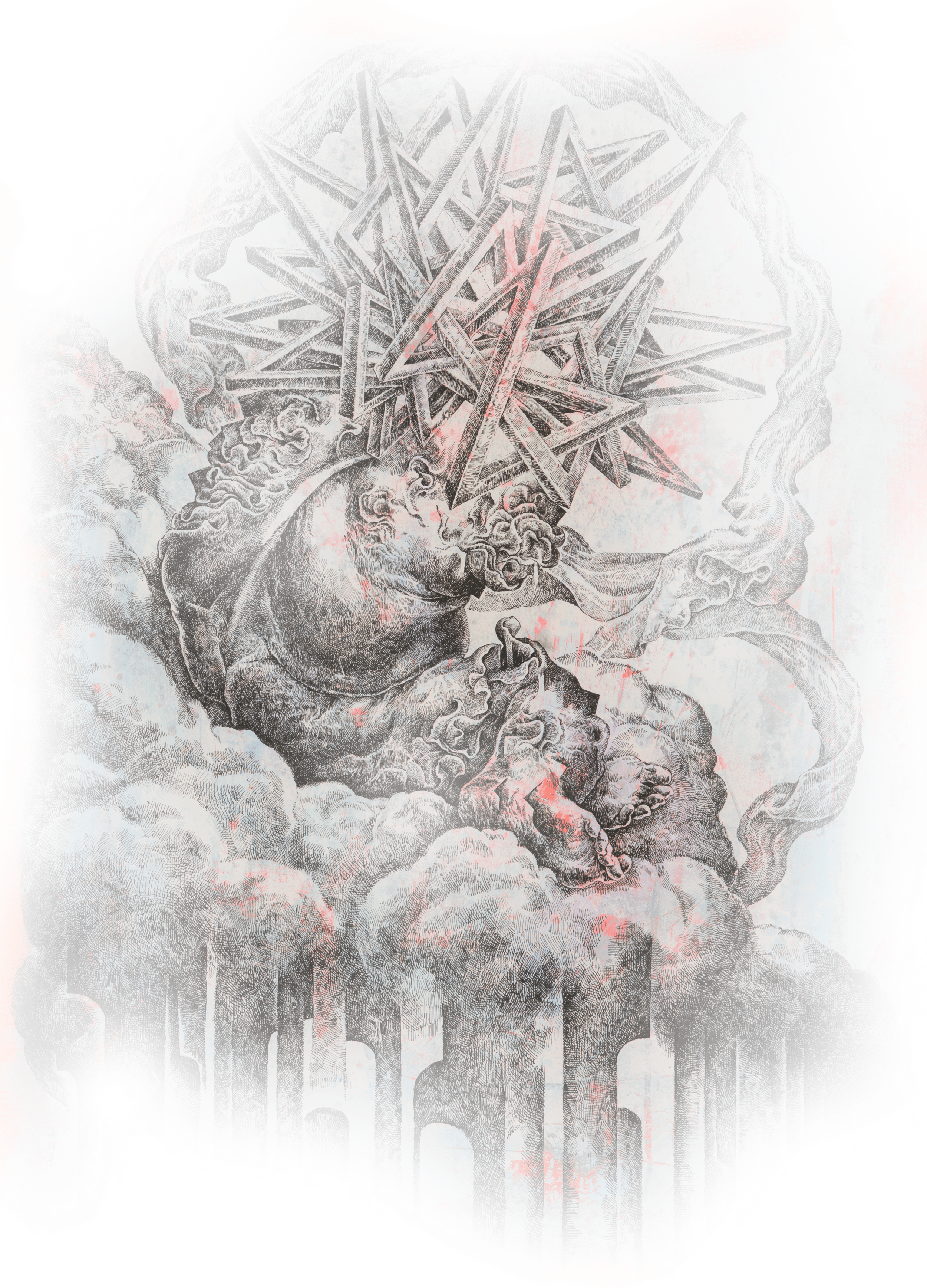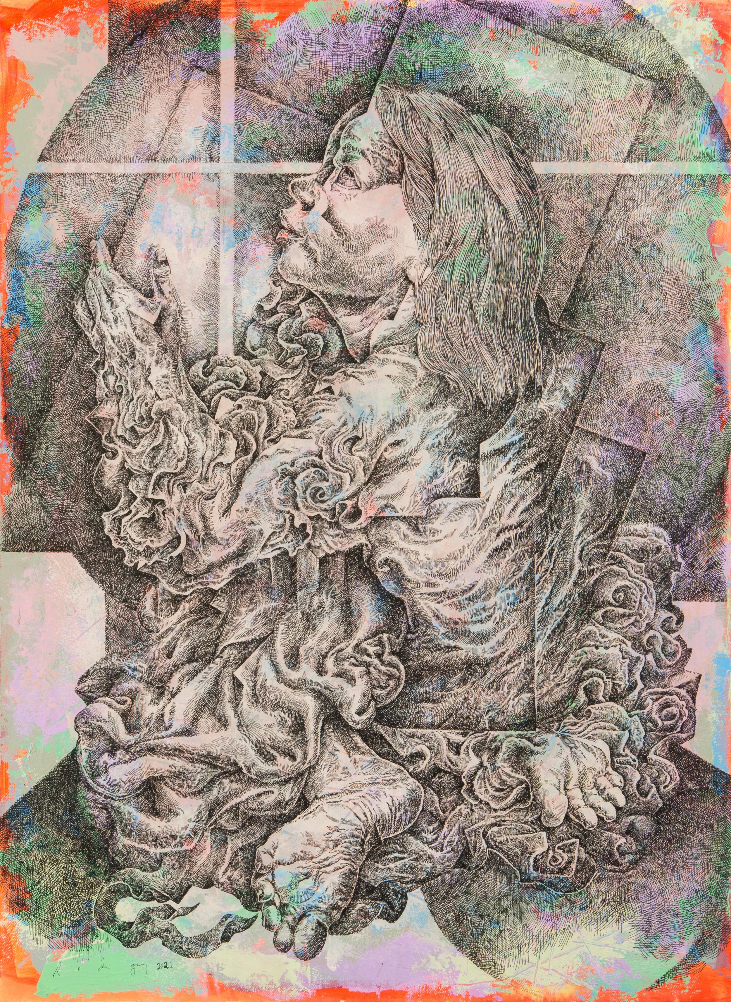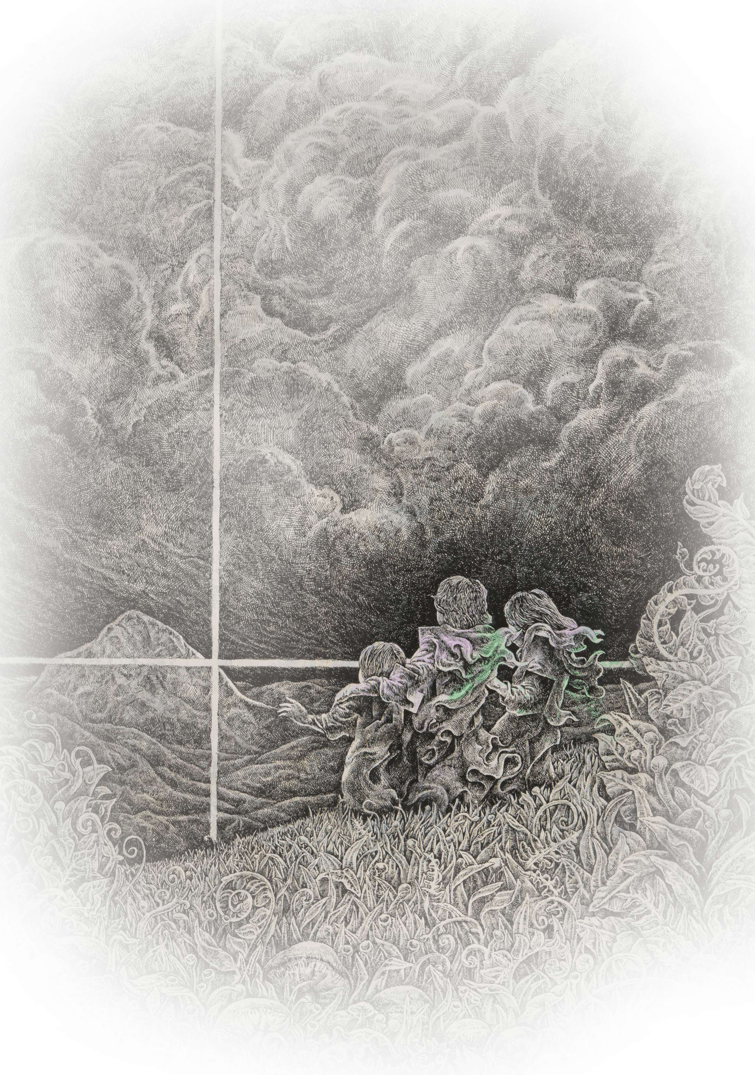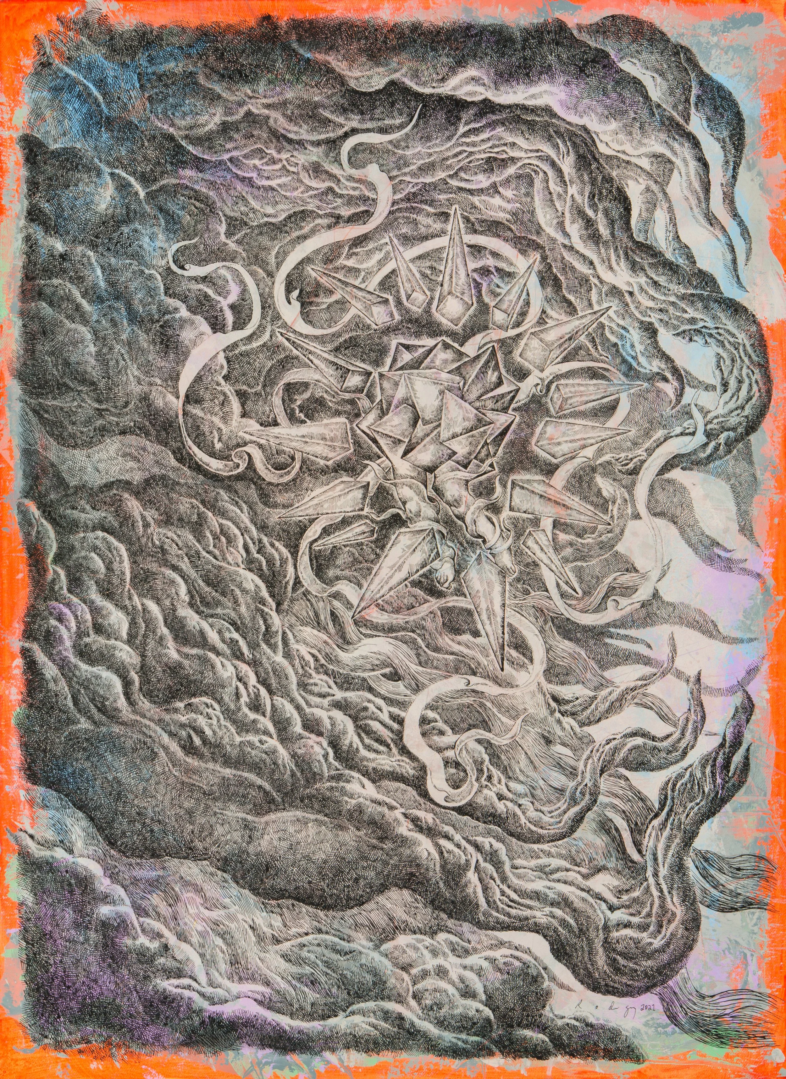 Scene 13 / Pen and ink, and acrylic on canvas / 30 x 20 in