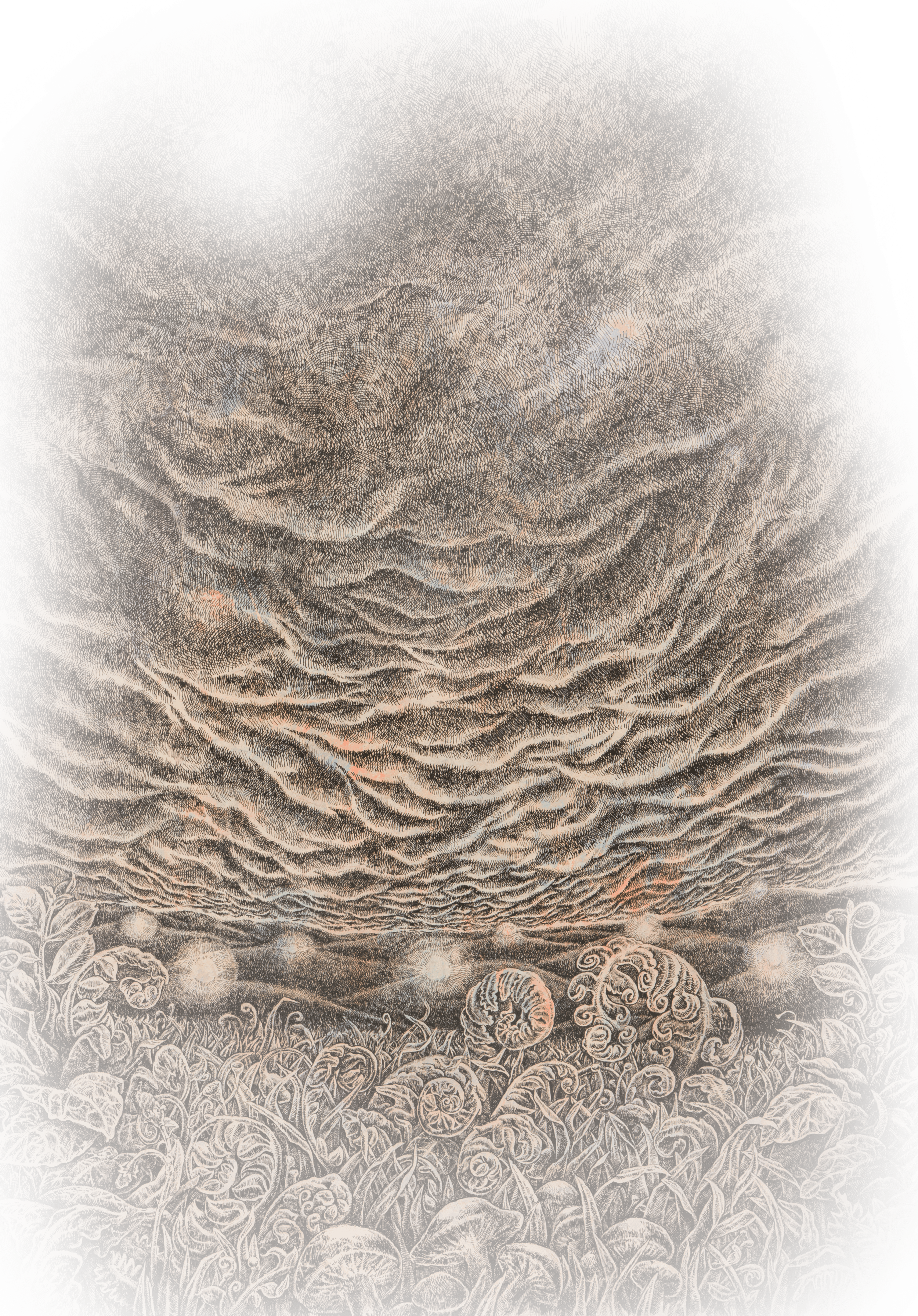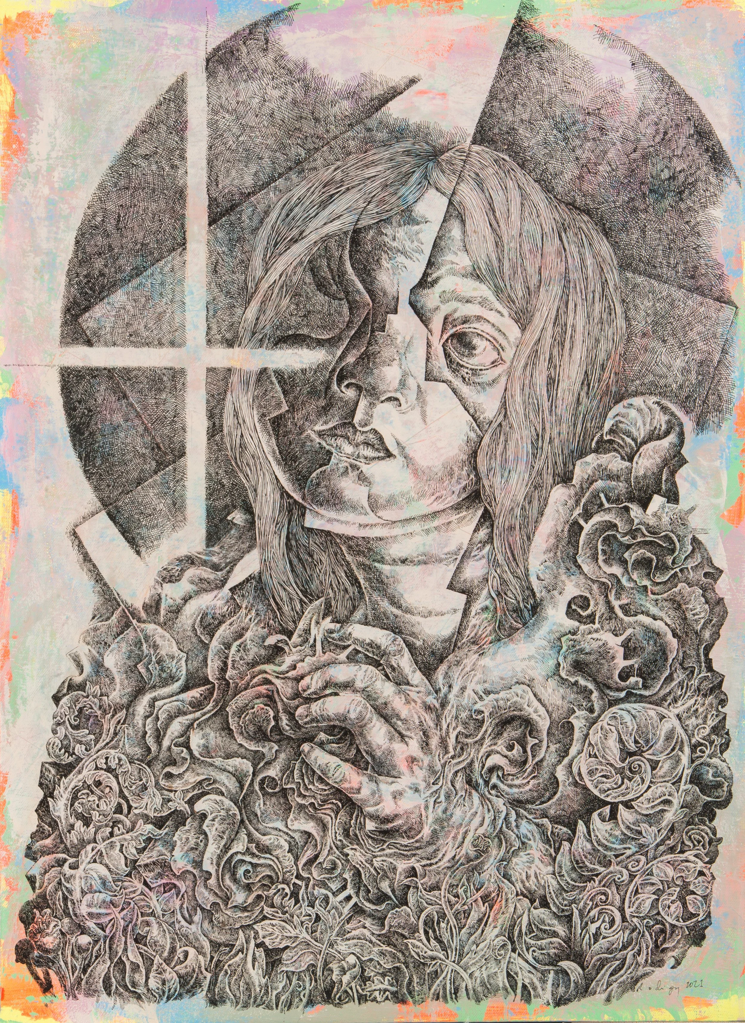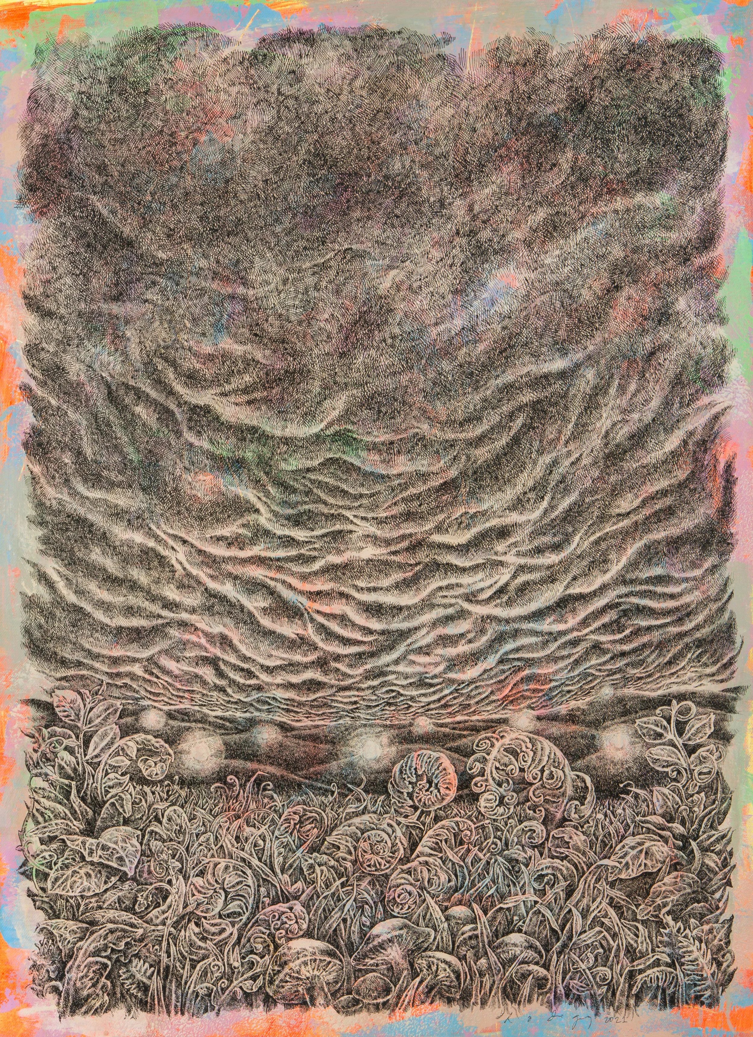 Scene 15 / Pen and ink, and acrylic on canvas / 30 x 20 in