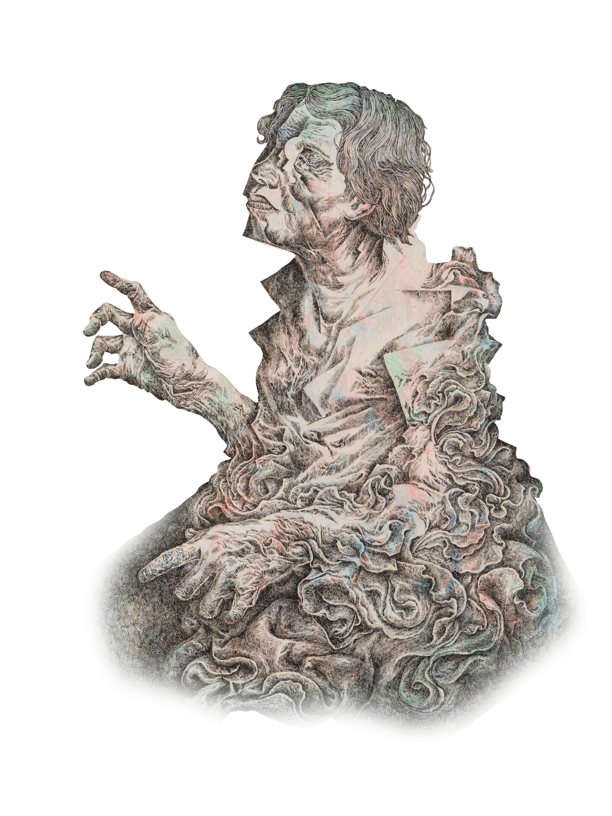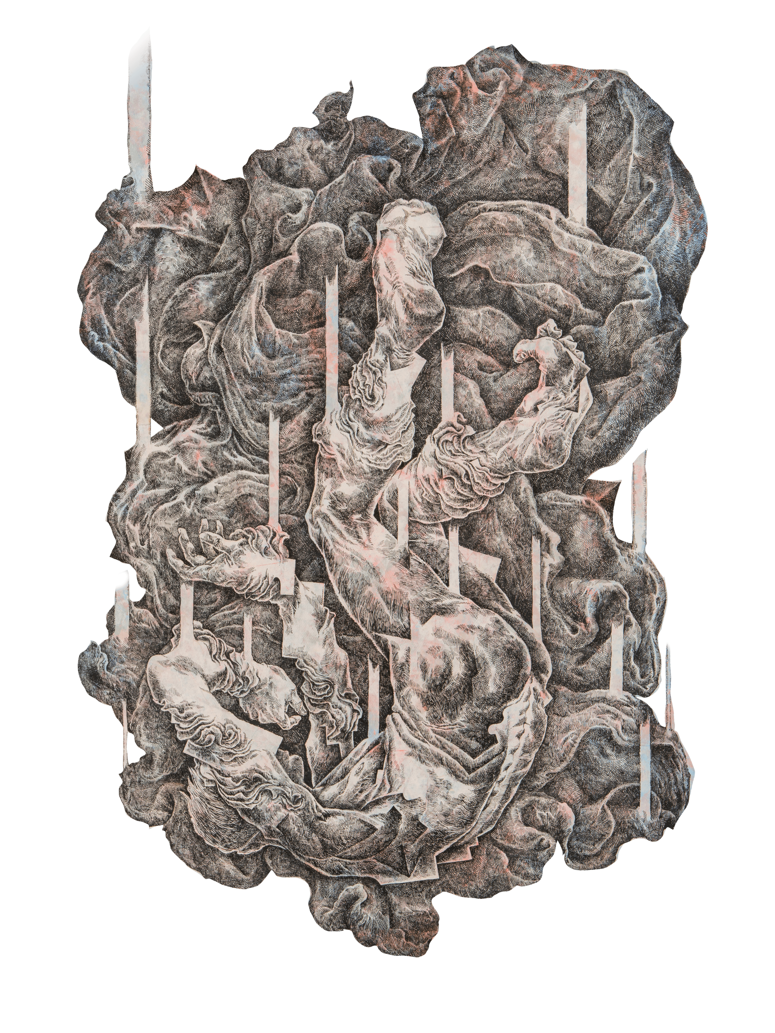Scene 5 / Pen and ink, and acrylic on canvas / 30 x 20 in