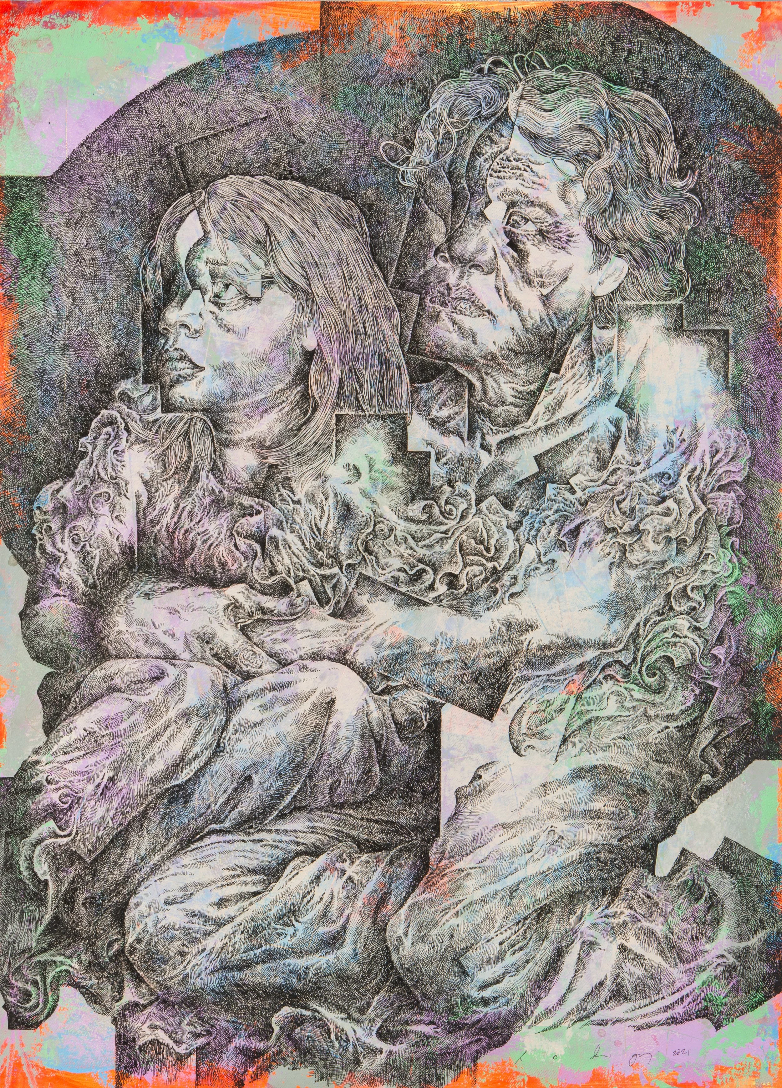 Scene 2 / Pen and ink, and acrylic on canvas / 30 x 20 in
